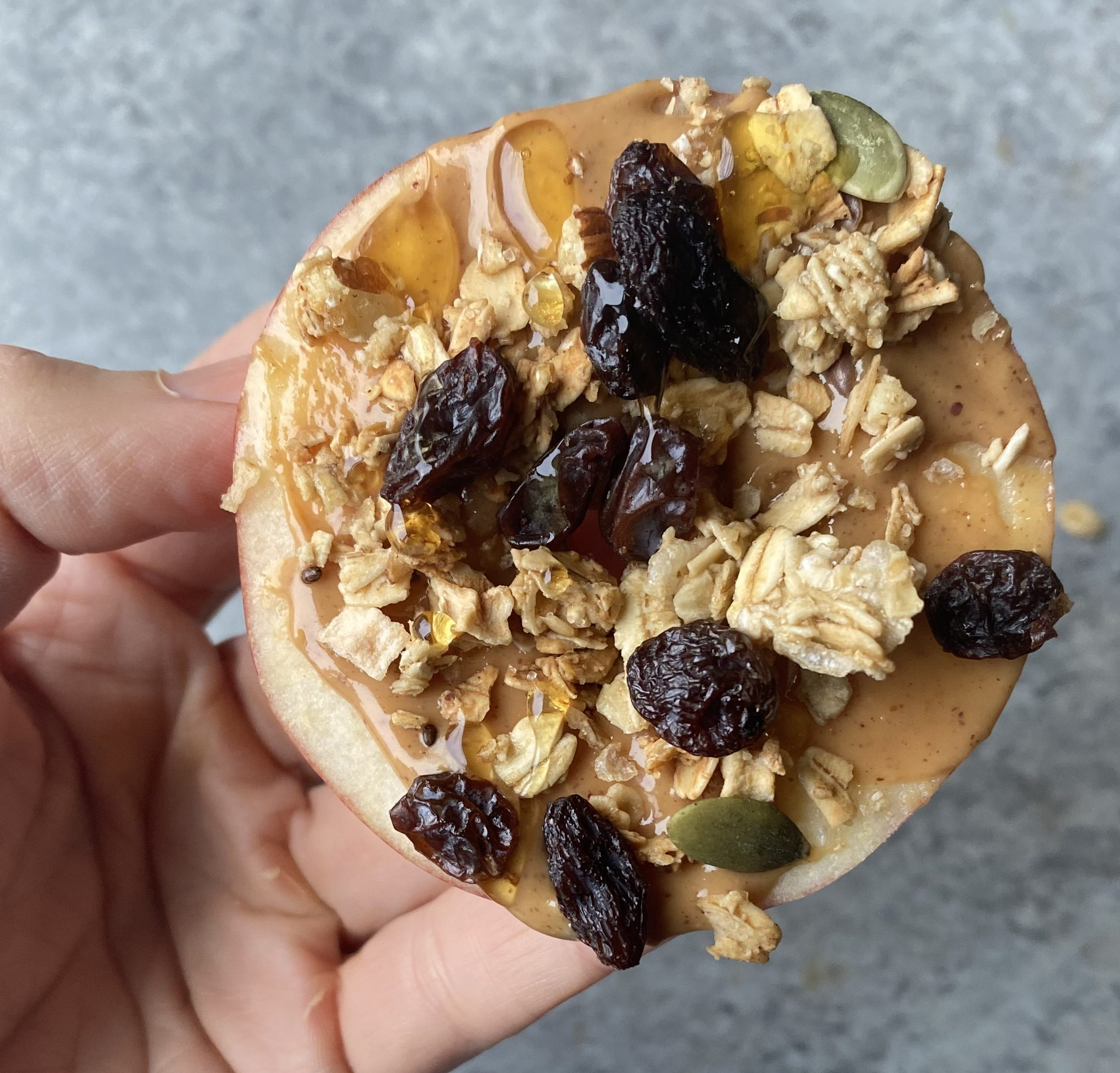- For younger kids, slice the apples thinly but with enough thickness to support the toppings. Younger kids might also have an easier time eating it if the peanut butter is spread thinly.