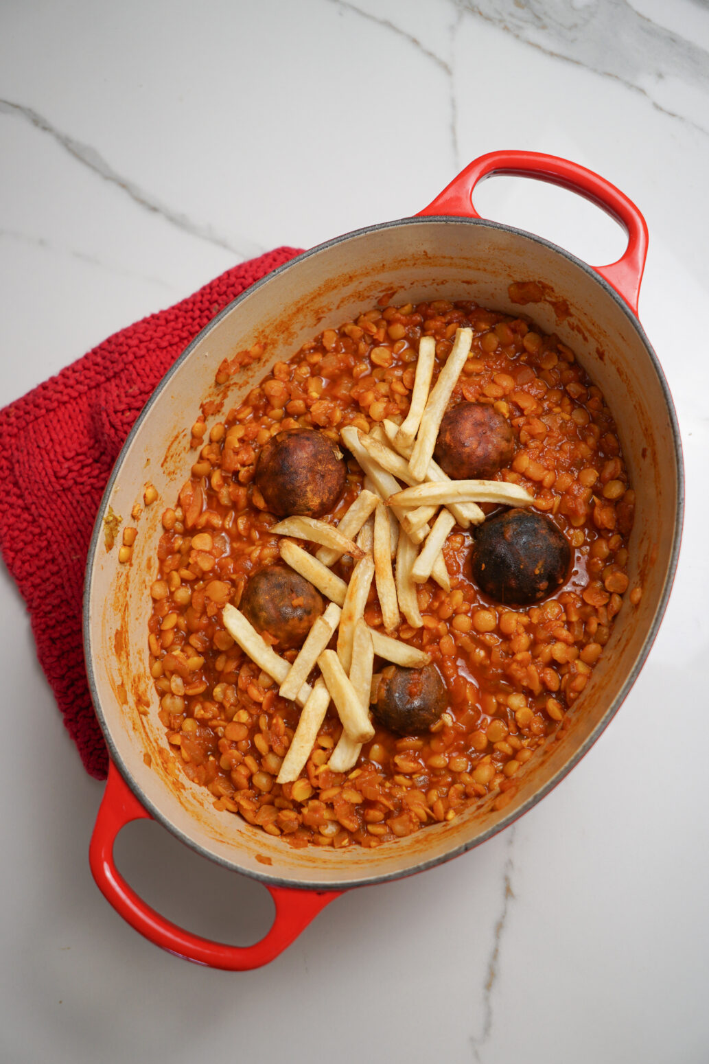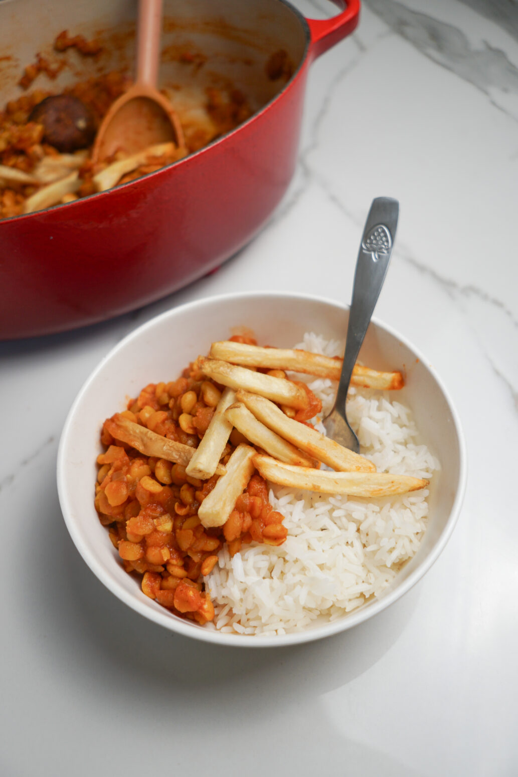 Whether you’re new to Persian food or looking for a cozy plant-based meal to add to your rotation, this stew is a must-try. Serve it over rice and don’t forget the fries!